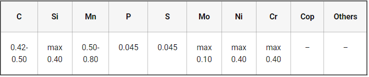 THÀNH PHẦN HÓA HỌC CỦA ỐNG THÉP ĐÚC C45/S45C