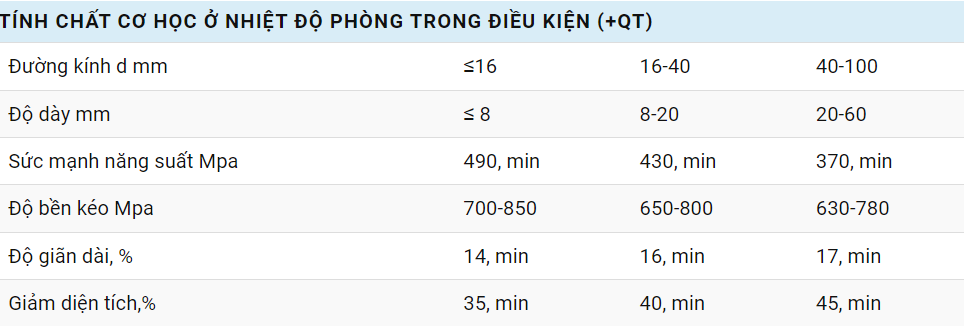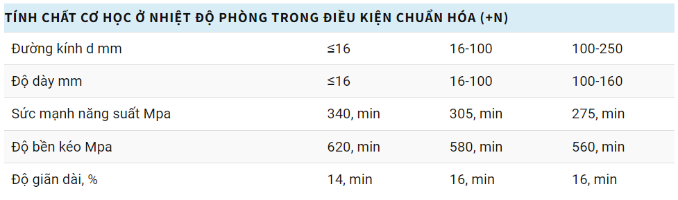 TÍNH CHẤT CƠ HỌC CỦA ỐNG THÉP ĐÚC C45/S45C
