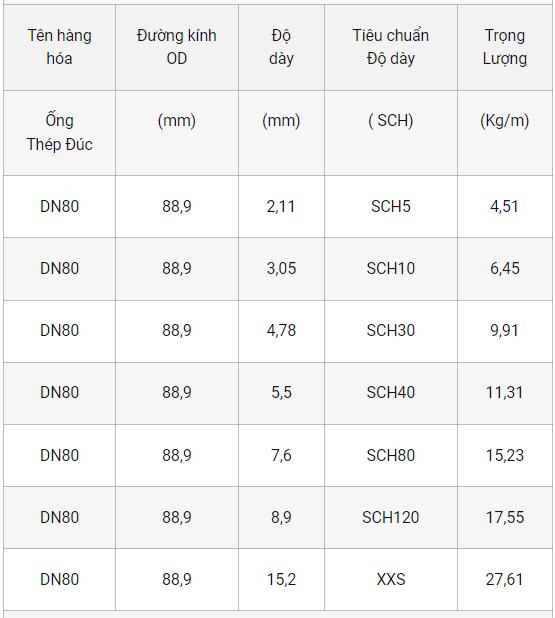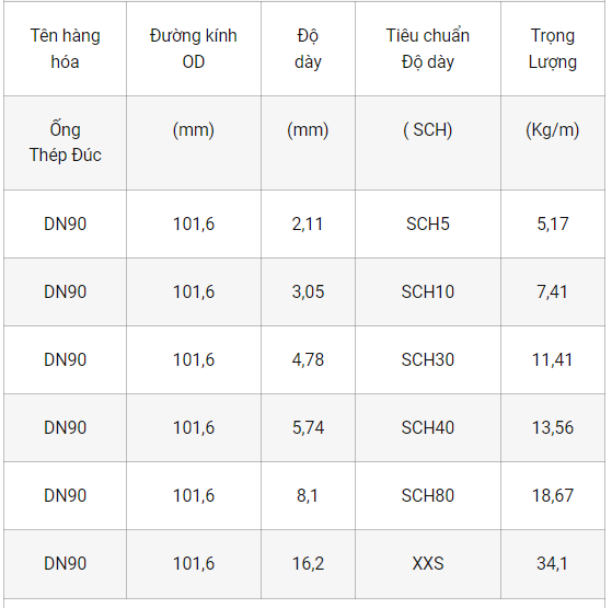 Quy cách ống thép đúc S45C DN80 – Phi 90