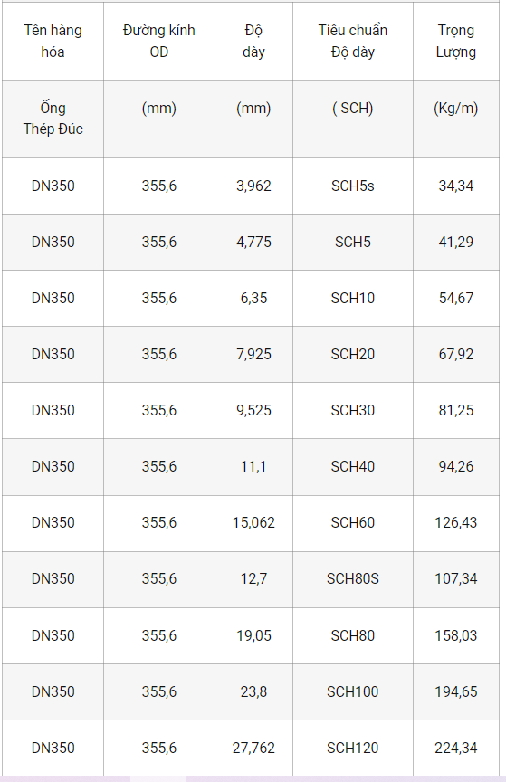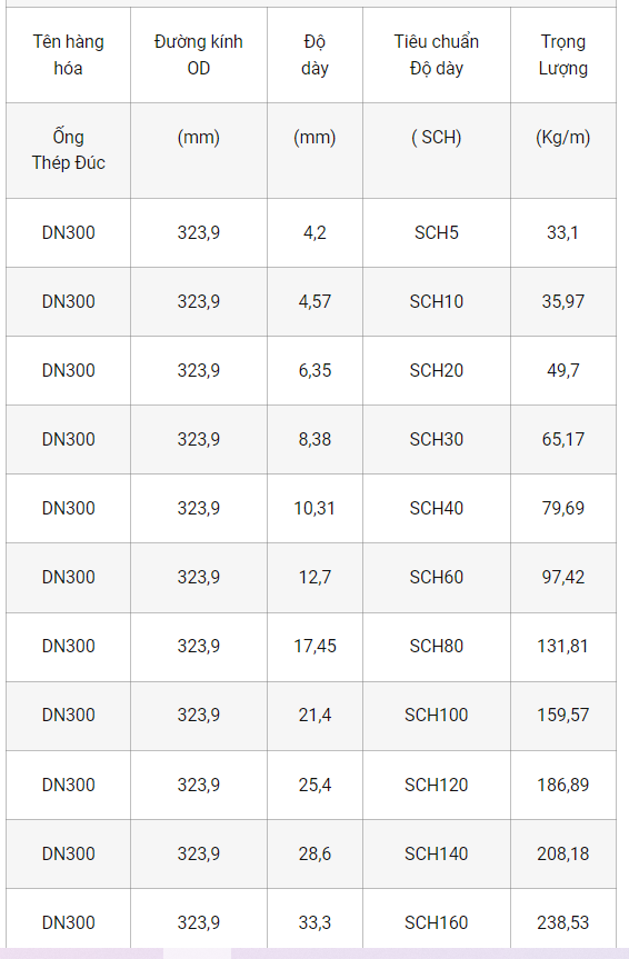 Quy cách ống thép đúc c45 DN300- phi 323 (325)