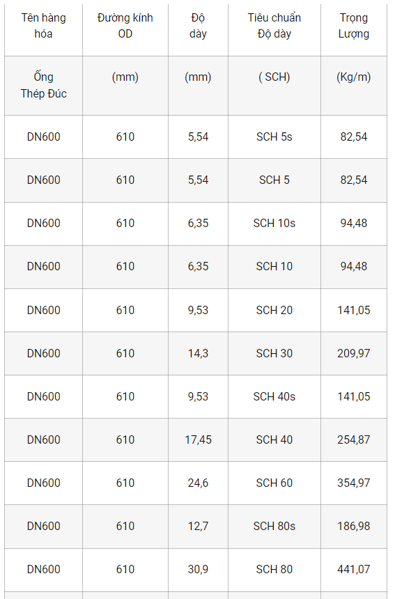 Quy cách ống thép đúc c45 DN600 – phi 610