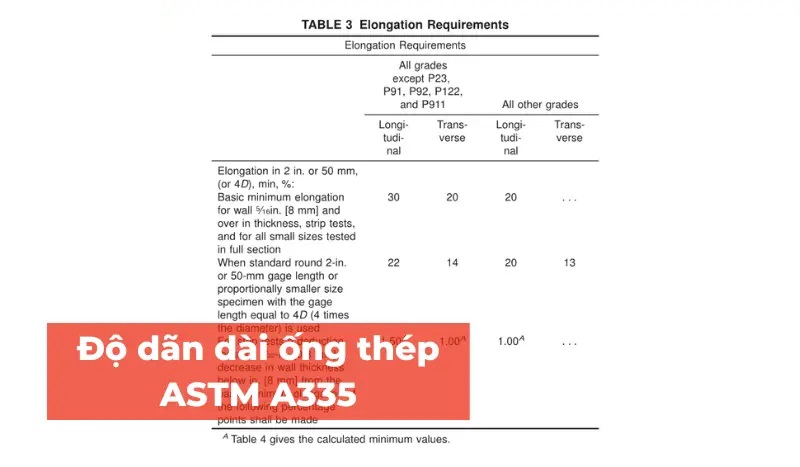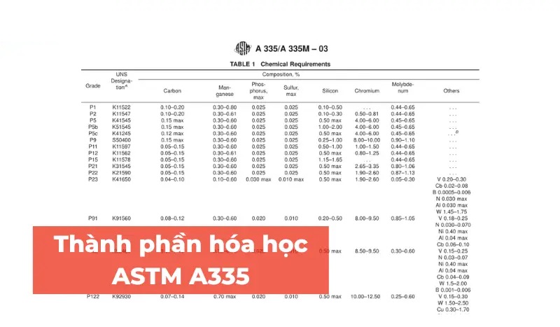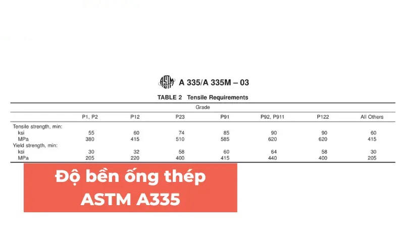Các đặc tính kỹ thuật của tiêu chuẩn ASTM A335