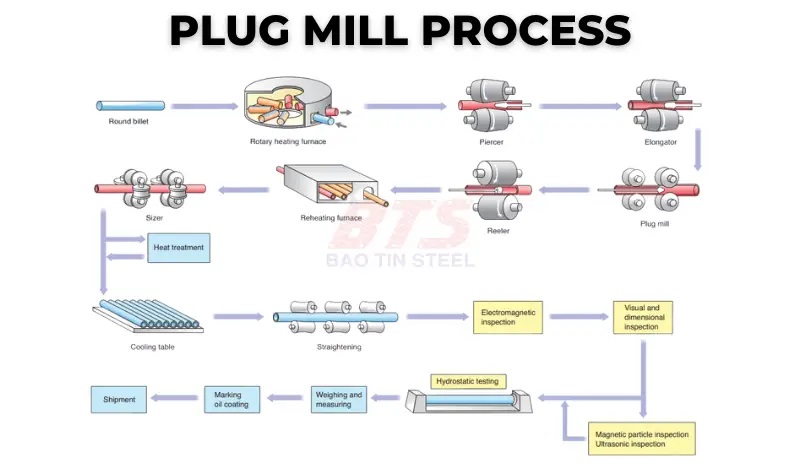 Quy trình sản xuất ống thép đúc hợp kim ASTM A335 hoàn toàn giống với quy trình sản xuất của các loại ống thép đúc khác nhé. Chỉ khác là nguyên liệu đầu vào (phôi) khác nhau thôi. Cùng chúng tôi tìm hiểu quy trình sản xuất ống thép đúc