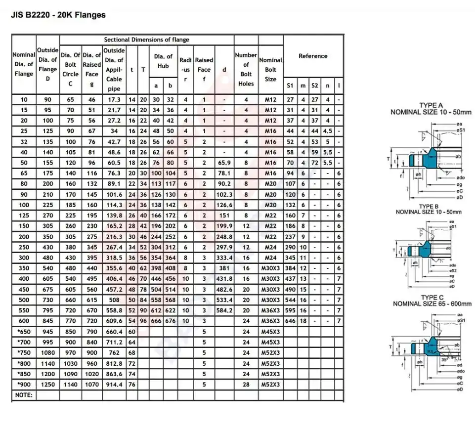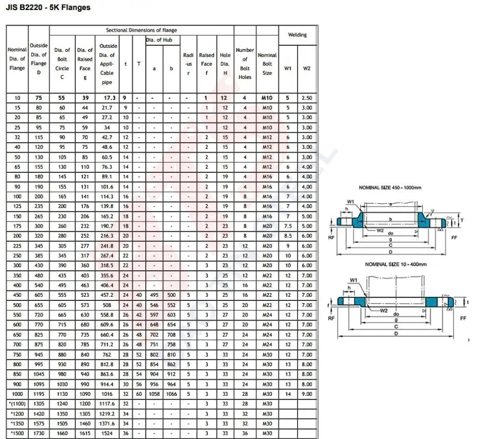 Tiêu chuẩn mặt bích JIS 5K, 10K, 16K, 20K