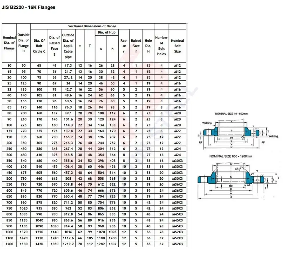 Thông số kỹ thuật tiêu chuẩn mặt bích JIS 16K