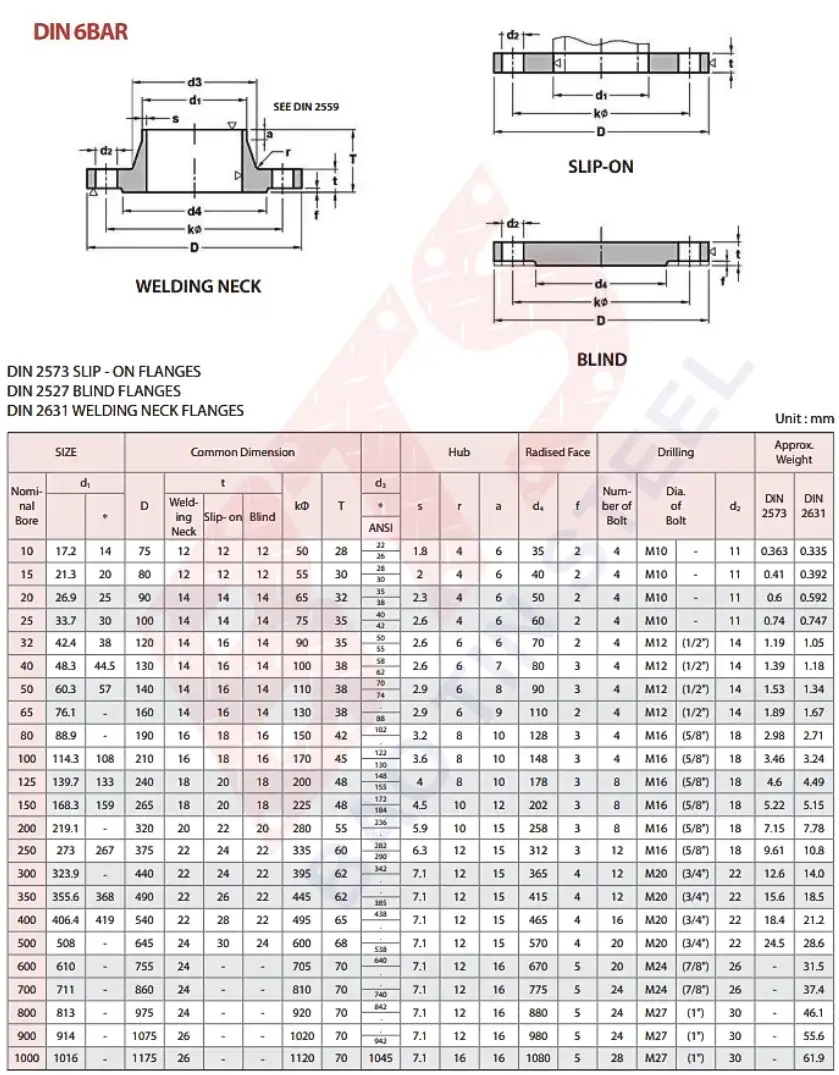 Thông số kỹ thuật mặt bích tiêu chuẩn DIN PN6