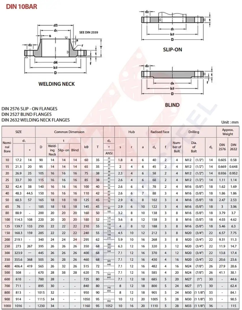 Thông số kỹ thuật tiêu chuẩn mặt bích DIN PN10