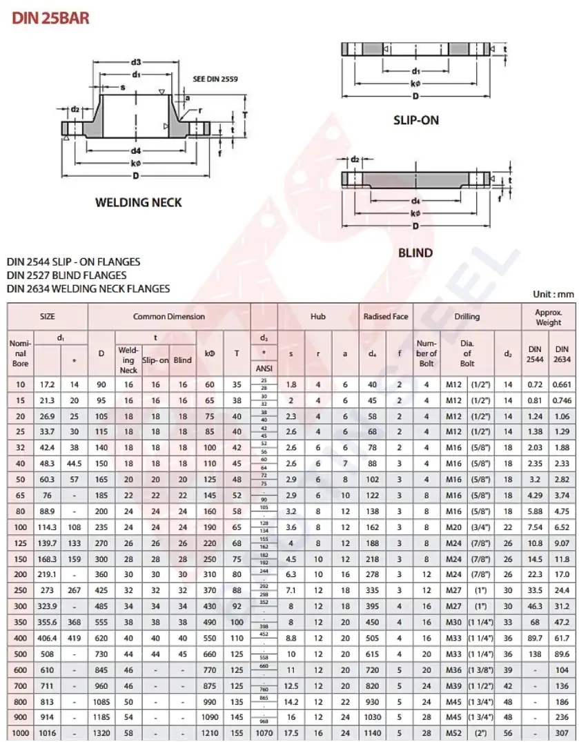 Thông số kỹ thuật mặt bích chuẩn DIN PN25